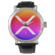 Uhr, Vintage Männeruhr mit schwarzem Lederarmband