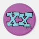 "XX" Mädchen und Frauen vereinen sich. Schalten Sie das Blau auf lila Doppel-X-Grafikdesigns auf Tasten, Magneten, Aufklebern, Schlüsselketten und vielem mehr. Zwei X-Chromosomen setzen Sie in sich ein. Von B3 bethree Graffiti.