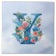 Monogram Y in blau mit schönem Blumendesign am blauen bewölkten Himmel mit flauschigen weißen Wolken. KI-generiert.