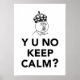 Y U No Typ kommt zum Keep Calm und Carry On Franchise. Mit dem gut geliebten Y U No Wut Gesicht, das zu einem Internet-Mem geworden ist. Er trägt die Krone aus dem Behalten Calm Poster und frage "Y U No Behalt Calm?" Ein modernerer Blick auf das Thema Keep Calm und Carry On für die SMS-Generation.