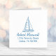 Einfache schattige Abbildung eines kleinen Segelbootes. Passen Sie Ihren eigenen Namen und Ihre eigene Adresse an.