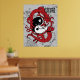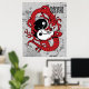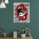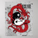 Yin Yang-Symbol und Dragon-Poster drucken, mit einem Drachen, der das Yang-陰-Symbol und den chinesischen Yin-Yang-Charakter in Schwarz, Weiß, Rot und Grau hält.