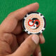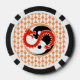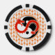 Roter chinesischer Drache mit schwarz-weißem Yin-Yang-Symbol auf Mustern.