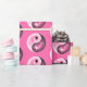 Dieses Volleyball-Thema Yin und Yang-Geschenkpapier zeigt ein Halbtropfenmuster aus schwarz-weißen Yin- und Yang-Symbolen, deren halbtransparente Elemente einen minimalistischen Volleyball (vertreten nur durch seine Naht in weiß) und einen individuell anpassbaren rosa Hintergrund - durch katz_d_zynes