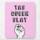 Dieses Kunstwerk enthält ein Poster im Cartoon-Stil mit dem Zitat "Yas Queen Slay" und erhöht die weibliche Faust.