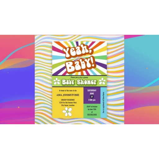 © 2024 Soziales Designs. Feiern Sie die bevorstehende Ankunft eines kleinen mit dieser individuell gestaltbaren "Yeah, Baby!" Baby Dusche Einladung. Mit einem Retro, farbenfrohen Design, ist diese lustige und einmalige Einladung sicher, den Ton für ein unvergessliches Ereignis Set. Personalisieren Sie die Einladung nach Ihren Wünschen und bereiten Sie sich darauf vor, die Mutter-to-be mit Liebe und Aufregung zu duschen.