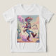 A wild cowboy skeleton scatters pastel-colored bone dust across the desert as musical notes swirl! Dance like there's no tomorrow with the energy of "Yeehaw & Bone Dust." Spooky, fun, and vibrant! Kids dancing skeleton tshirt