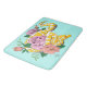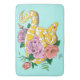Ein gelber Albino-Ball-Python kommt um rosa und pfirsichfarbene Rose in einem aquamarinen Hintergrund herum.