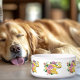 Ein gelber Albino-Ball-Python kommt um rosa und pfirsichfarbene Rose in einem aquamarinen Hintergrund herum.