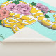 Ein gelber Albino-Ball-Python kommt um rosa und pfirsichfarbene Rose in einem aquamarinen Hintergrund herum.