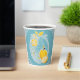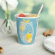 Yellow and blue fruit patterns is a beautiful AI art that shows lace patterns on a light blue background. They are the perfect paper cups to impress your guests.