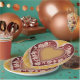 Yellow and red floral patterns is a feminine AI art that shows lace on a yellow background. They are the perfect paper plates to impress your guests.