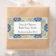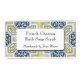 Ein individuelles Etikett mit Blockbuchstaben und Drehbuchstaben auf antiken Fliesenmustern in Blau, Weiß und Gelb, mit handgemaltetem Ambiente. Passen Sie es an, um die Schriftart zu ändern, die Etikettengröße oder die Hintergrundfarben zu ändern und sogar das Design für später retten.