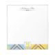 Yellow Blue Kariert Tartan Custom Script Monogram Notepad Elegantes, stilvolles und modisches anpassbares Notizblock mit "personalisierten Namensnotizen" oben, "personalisiertes Monogramm" und gelb blauem kariertem Tartan unten. Dieses schöne Notizblock kann als wunderbares Geschenk durch Hinzufügen von Namen oder Text / Änderung von Schriftart, Farbe, Größe und Position.