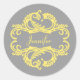Elegante und raffinierte Chic Damask Stickers mit weichem grauem Hintergrund und einem stilvollen Damast blühte die Verzierung in Gelb. Dieses moderne Design lässt sich einfach mit Ihrem eigenen Text anpassen. Klicken Sie auf "Anpassen", um weitere Personalisierungsoptionen zu erhalten.