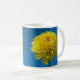 Eine frisch gelbe Dahlie auf einem strahlend blauen Himmelshintergrund.