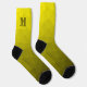 Yellow geometric mesh pattern Monogram Socks. Personalize gift for him with custom initial and name.