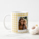 Custom 3 Foto Tasse, Gelbes Gingham Muster Design - 6 Farben. Feiern Sie den Alltag mit dieser charmanten, maßgeschneiderten Foto-Tasse mit einem zeitlosen Gingham-Muster, das in 6 schönen Farben erhältlich ist. Diese Tasse ist für drei Ihrer Lieblings-Fotos konzipiert und eignet sich hervorragend für die Präsentation familiärer Erinnerungen, Hochzeitsfotos oder besonderer Meilensteine. Ob Morgenkaffee, Nachmittagstee oder heißer Kakao - dieser personalisierte Schlamm sorgt für eine fröhliche und gemütliche Touch. Es ist auch ein nachdenkliches Geschenk für Hochzeiten, Jubiläen, Geburtstage, oder als ein Sake für Liebende. Diese liebevoll gestaltete Tasse aus Gingham Foto verbindet rustikalen Charme mit moderner Personalisierung. Wählen Sie Ihre Lieblingsfarbe, laden Sie Ihre Fotos hoch und erstellen Sie eine einzigartige Tasse, die Ihnen bei jedem Schluck Freude bereitet.
