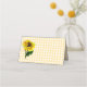 Country chic gefaltete Platzkarte in einem gelb-weißen Gingham-Muster, mit Vintagen Kunstwerken einer Sonnenblume, auf der Vorderseite. Personalisieren Sie den benutzerdefinierten Text auf der Kartenrückseite, um zu lesen, was Sie gewollt haben. Personalisieren Sie die Vorderseite jeder Karte, von Hand, für Ihre Hochzeit Empfang.
