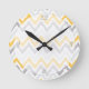 Yellow Gray Chevrons Ikat Pattern Runde Wanduhr