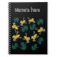 Personalisiertes Notebook mit gelben grünen Frogs-Mustern.