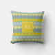 Yellow Grey Aqua Geometric Muster Monogram Kissen