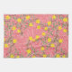 Weiße Weinreben und gelbe Jasmin-Blume überlagern abstrakte, gewellte, weiße Linien auf korallenrosa Hintergrund. Suchen Sie in der Yellow Jasmine Collection nach koordinierenden Produkten.