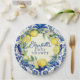 Feiern Sie mit diesen Vintagen mediterranen blauen Fliesen und Zitronen-inspirierten Tellern die Mama to be. Diese Vintagen Blue Fliesen und Zitronen Baby Shower Papier-Teller können mit Ihren eigenen Details angepasst werden. Das Design zeichnet sich durch einen Vintag blauen Fliesenhintergrund mit realistischen Zitronengrafiken aus.