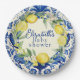 Yellow Lemons Blue Tile Lemon Babydusche Pappteller