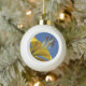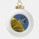 Nahes Foto einer schönen gelben Lilie gegen einen klaren blauen Himmel.