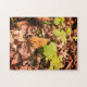 Dieses Rätsel enthält ein Foto eines einsamen gelben Mörtels im Wald.