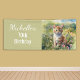 Welcome guests with this adorable watercolor kitten birthday banner. Featuring a soft orange tabby sitting among wildflowers and meadow greenery, paired with customizable text on a coordinating background, this banner adds a warm and charming touch to your celebration. Perfect for birthday parties of any age and especially loved by cat lovers.