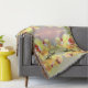 Das wunderschöne Muster von HomeWare auf diesem Throw Blanket wurde aus einem Originalfoto von gelben Orchideen im Nachmittagssonnenlicht gemacht. Die Orchideen-Blume haben blassgelbe Blütenblätter mit roten bis lila Mittelpunkten. Ein dunkelgrüner Stamm windet sich durch die Mitte der Blüten. Der pastellfarbene Hintergrund ist in Rosatönen gehalten, die sich in hellgrün vermischen. Ein paar hellgrüne Blätter einer Aloe-Pflanze sind in einer Ecke zu sehen. Wenn das Foto zu einem Muster kombiniert wird, wird das Blumendesign zu einem Orchideengarten mit dem rosa Glühen der Nachmittagssonne in der Mitte.