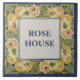 "custom house name plate", "personalized house name plaque", "personal customized text sign", "yellow flower casa ceramic tile", "floral rose roses flowers", "vintage green gold yellow blue", "traditional english cottage nature", "old fashioned victorian classic", "antique asian home signage", "decorative rustic country villa"
