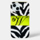 Elegantes, elegantes, farbenfrohes, einzigartiges Design; gestreiftes, wildes zebrafarbenes Hautmuster mit einem hellen Edelstein. Sie können den Edelstein verschieben oder neu vergrössern, um sich mit Ihren Initialen und eigenem Text anzupassen.