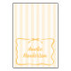 Set the tone for your special day with this trendy name cards featuring soft pale yellow vertical stripes and a casual handwritten typography. The delicate color palette creates a fresh, romantic feel, perfect for an outdoor summer venue. The cards are flat and need folding in two! Final folded size is 3,5x2,5"