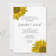 Feiern Sie die frisch vermählte Braut und Bräuche am Morgen nach ihrer Hochzeitsfeier mit der hübschen Gelben Sonnenblume Post Wedding Brunch Einladung. Dieser einfache und elegante, aber blumengeschmückte Sommer oder Herbst After Wedding Breakfast oder Luncheon Invite bietet gelbe Sonnenblumen an den Ecken mit weißem Hintergrund. Perfekte Inspiration für Ihren Sommergarten Party Heirat Empfang und Feier.