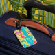 Identifizieren Sie Ihr Gepäck, Ihren Rucksack oder Ihre Computertasche mit diesem lustigen und stilvollen Gepäckanhänger, das mit einem whimsy paisley Muster gestaltet und mit Ihrem Monogramm, Ihren Initialen oder Namen personalisiert ist. Die kühnen Farben dieses angesagten Paisley-Designs zeichnen sich durch einen sonnigen, gelben Hintergrund mit einem türkisblauen Emblem-Bereich aus, in dem sich die Gäste individuell gestalten können. Helle, frische, moderne Paisleys bilden ein wunderschönes künstlerisches Design, das inspirierende Worte von Liebe, Hoffnung, Glauben, Inspirier, Tschechisch, Be Happy, Dream, und Live im Hintergrund zwischen den Paisleys beinhaltet. Diese von Phyllis Dobbs entworfene Kollektion Mod Paisley verwendet die Farbtöne aquamarin, türkisblau, Limettengrün, Wein, Gelb, Fuchsien und Orange, um das traditionelle und beliebte Paisleymotiv zu genießen. Das Paisleymotiv ist zeitlos ansprechend, aber diese originelle Kunst ist zeitgenössisch und zugleich modern. Vollständig anpassbar für Personalisierung mit eigenen Worten, um Ihre eigene Nachricht hinzuzufügen.