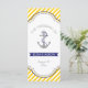 Gelbe, weiße Streifen und graue marineblaue Ankerfeier für Wasserfeste und Party. Stilvoll gestreiftes Muster mit gelben, weißen diagonalen Streifen, einem grauen Anker mit einem marineblau blauen Herz und Seil und Text in einem Rahmen mit marineblau-blauem Banner. Zeitgenössisch und dennoch mit einem Vintagen Blick in gewisser Weise. Sie können Hintergrund und Textfarbe aus über 200 Farben aus dem Zazzle Farbdiagramm ändern. Dieses elegante Design ist ein vollständig anpassbares Template und ist Teil eines Hochzeitsvortrags, das für eine Hochzeit perfekt geeignet ist.