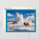 Die Postkarte wird mit einem wunderschönen Foto eines Bison in der Nähe eines Geysers im Yellowstone Nationalpark gezeigt. Passen Sie dieses Objekt an oder kaufen Sie, wie es ist. Bild