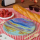 Im Yellowstone Nationalpark 2018 gelegen, ist dies ein abstraktes Foto in der Nähe eines der zahlreichen, bunten Lavapools im Park. Schöne und abwechslungsreiche Farben in einem wirbelnden Muster. Ideal für ein Hintergrundbild oder als buntes Muster auf Kleidung, Handys, Kissen und anderen Produkten.