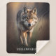 Dieser Sherpa-Wurfdecke wird in einem Foto eines Wolfs gezeigt. Text von Yellowstone, ganz unten geschrieben. Passen Sie dieses Objekt an oder kaufen Sie es wie geplant. Lizenziertes Bild