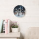 Diese Wanduhr wird in einem stilvollen Foto von Yellowstone Wölfen gezeigt. Passen Sie dieses Objekt an oder kaufen Sie es wie gezeigt. Lizenziertes Bild