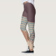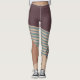 These leggings have a mid-century modern abstract design of a blue line, a tan triangle, and a brown circle made of dots on a field of dark eggplant and cream. If you want the same design with different colors, message me.