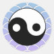 Ein schlichtes und elegantes Yang-Symbol, in tiefschwarz, auf einem Hintergrund stilisierter Wellen, in Blau- und Violetttönen. Das Yinyang-Symbol symbolisiert Taoismus, Ausgewogenheit, Harmonie. Erhältlich auf Aufklebern in 7 Formen, inklusive rund, oval, sternförmig, quadratisch und mehr. Von Scarebaby Design, gestützt durch die Zazzle-Garantie.