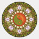 Yin-Yang-Symbol in Rot-Orange umrahmt von geometrischen Fraktalen