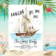 Ahoy! Mit dieser Weihnachtsnachtsfeier zum Thema nautische Party Einladung, die einen Pirat in Aquarellfarben aus einer Kokosnuss enthält, ein Piratenschiff und eine Piratenflagge mit den Aufnahmen "Aargh!" und "Yo Ho Ho". Personalisieren Sie Ihre Party-Daten...und man kann sogar das Piratenschiff benennen. Kunst von KL Stock