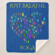 YOGA blaue Sherpa-Decke mit Herz. "JUST BREATH Sherpadecke