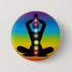 Eine Silhouette einer Person, die in einer Yogaposition sitzt, mit Chakras ausgerichtet.