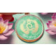 Yoga Studio Meditation Instructor / Life Coach / Healer / Reiki Master / Massage Therapy Schlüsselanhänger Template - Elegante Kalligraphie Imitate Gold Foil Yoga Meditation Easy Pose / Sukhasana Pose mit ZEN Symbol und OM Symbol auf grünem Gold Foil Textur Hintergrund.